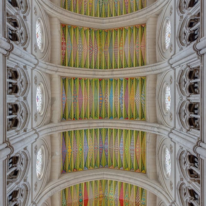 What was most interesting was the mix of art styles. I saw pre-Renaissance Christian art mixed with Renaissance Christian art mixed with cubist stained glass mixed with a straight up abstract art of a saint in the ambulatory, as well as the ornate paintings of the crucifixion on the eastern wall of the Cathedral. It was so interesting to see how the different art forms that Christians used to express themselves and honor their church come together in what feels like a celebration of Christian culture.