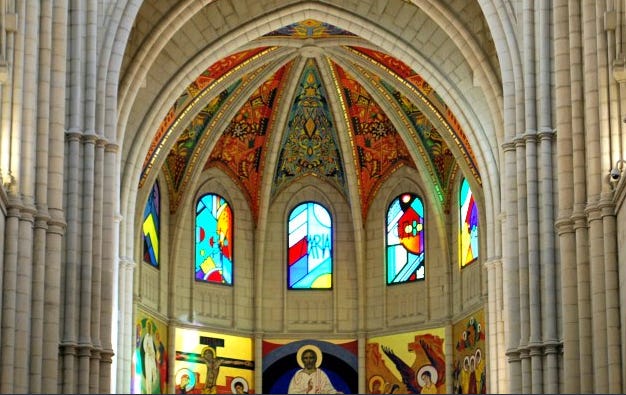 To my surprise, this cathedral was completed in 1993! It was consecrated by John Paul II who died in like 2005! It is a beautiful place to be, and I would like to go back in the future. Whenever I enter a cathedral, I'm always struck by how much effort and love went into the construction. How many hundreds of thousands of hours of work have to be done to even pay for the materials, much less design the thing. The men pouring the foundation probably knew they weren't going to live to see the first mass held under a completed roof, and yet they worked. Likewise, the first elderly woman to write the church into her will knew that she would not enjoy the music at Almudena, and yet she gave her widow's mite.